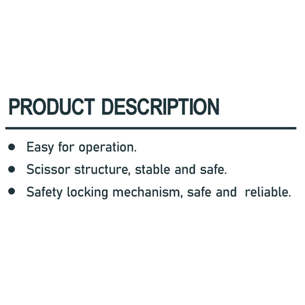 Easy for operation.Scissor structure,stable and safe.Safety locking mechanism,safe and reliable